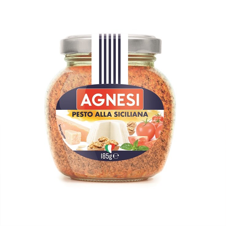 Pesto alla Siciliana – jego wyjątkowy smak pochodzi z tradycyjnej sycylijskiej kombinacji słonego sera Ricotta i orzechów włoskich.